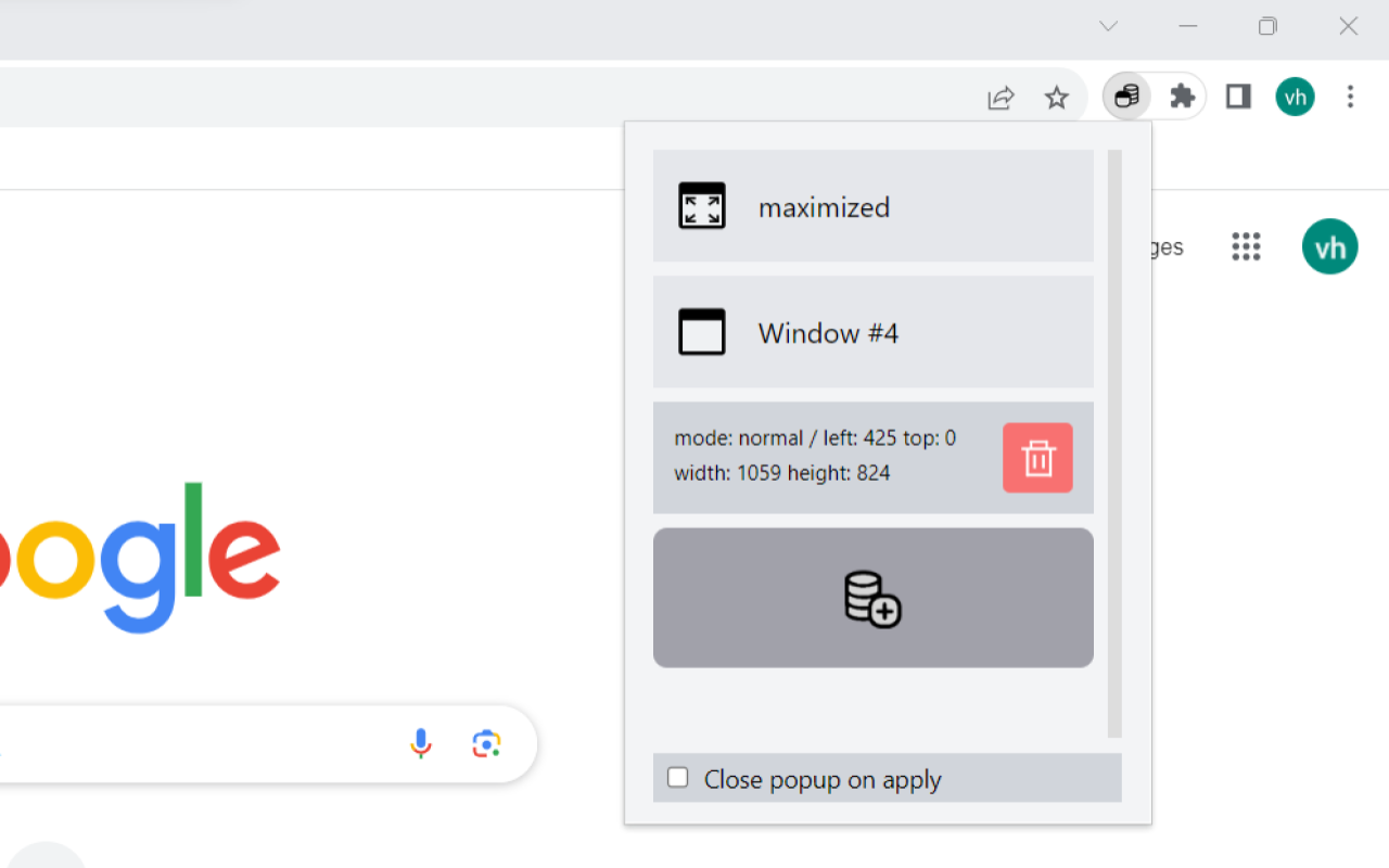 팝업으로 창의 크기를 저장하고 적용하게 해주는 확장 프로그램